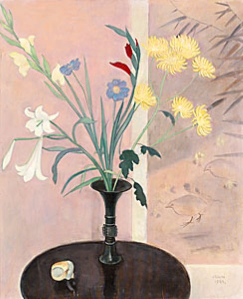 STILLEBEN MED LILJOR, GLADIOLUS OCH CHRYSANTHEMUM.