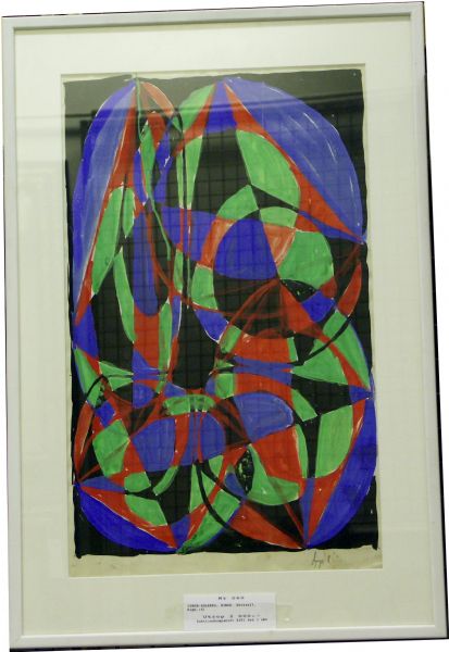 Geometrisk komposition i blått, grönt och rött