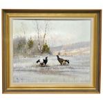 Motiv av ett möte mellan två orrar i vinterlandskap