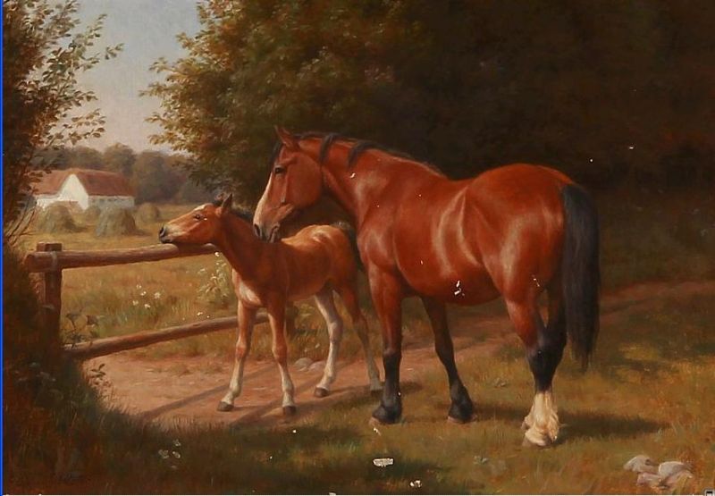 A mare with her foal in the sun