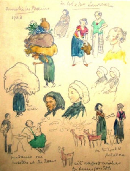 Crayon black crayon and watercolour, multiple studies on buff paper