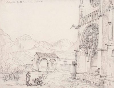 Schäfer mit Herde vor der Pfarrkirche in Bozen