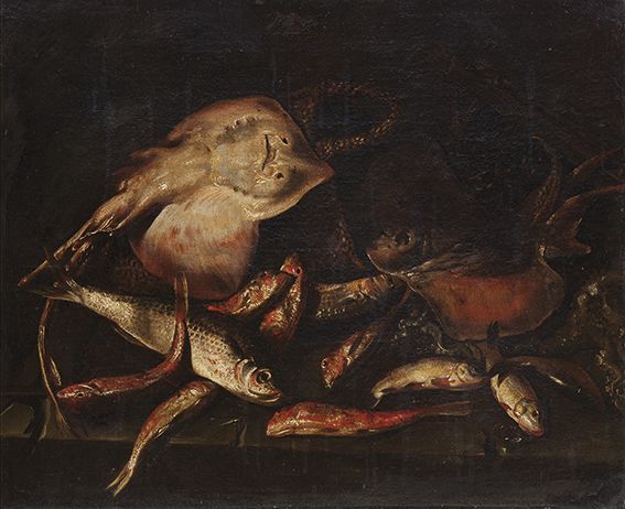 MULLETS, RAYS AND OTHER FISHES, ALL ON A MARBLE LEDGE