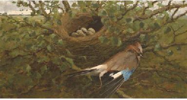 'Vlaamse gaai'; A jay by its' nest
