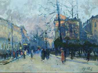 A Parisian boulevard at dusk