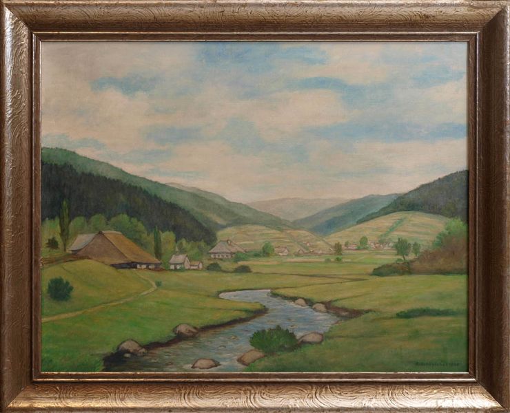 Blick in ein weites, sommerliches Schwarzwaldtal, darin vereinzelte Bauerngehöfte