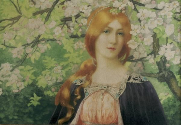 | Art Nouveau Maiden Standing in Cherry Blossoms | |