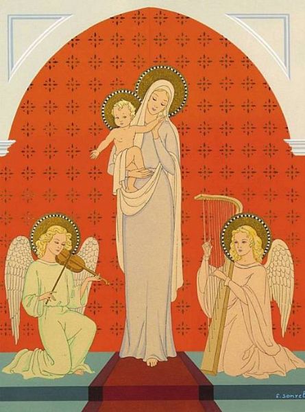 ANGES MUSICIENS AUX PIEDS DE LA VIERGE