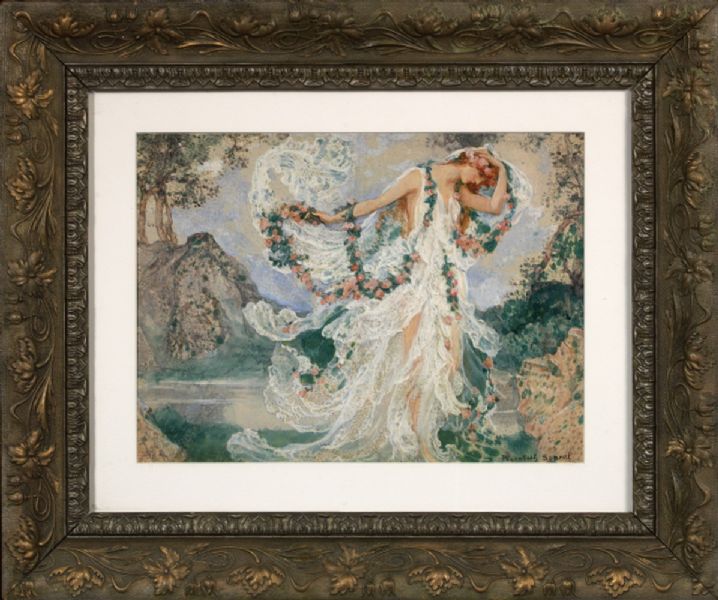 Nymph Robed in White with Floral Garlands