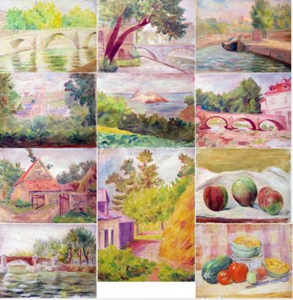 | Final de revue/Ponts/Arbres sur le quai/Péniche/Rivière à sec/Une tour/Les pêches/L'île/La fermette/Reflets dans l'eau/La meule | |