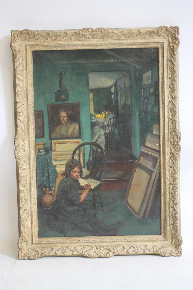 | Interior of Artist's Home with Woman Reading and a Child | |