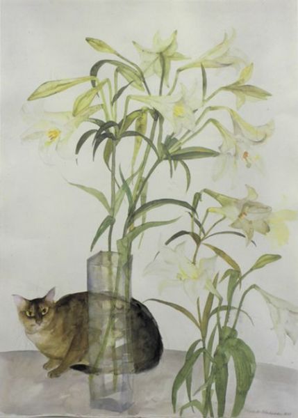 'CAT AND LILIES'