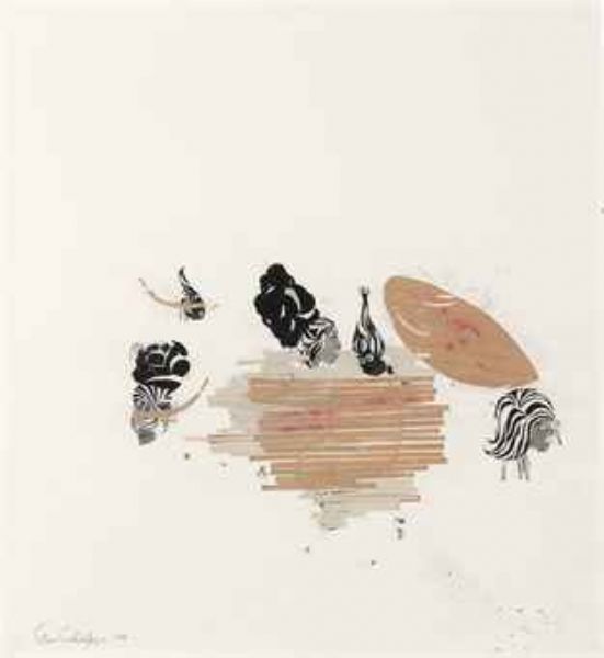 | Oil plasticine, watercolor, graphite and paper collage on cut paper | |
