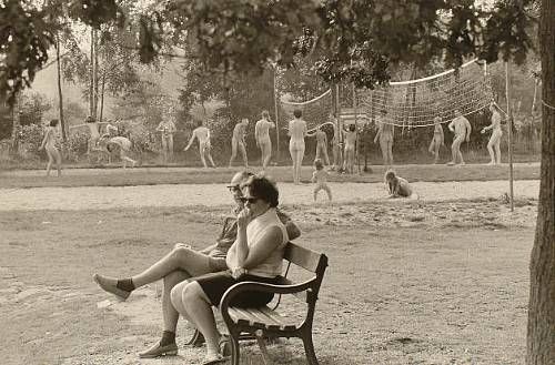 | Naturist members of the North Kent Sun Club enjoy a game of volleyball | |