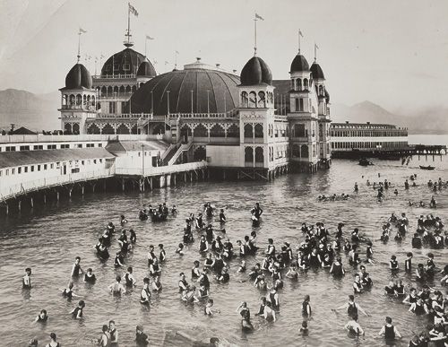Pier Scene with Swimmers