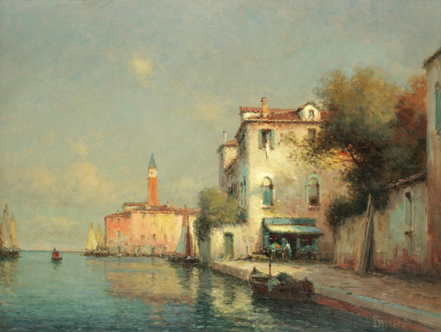 Venetian scene with a distant view of the Campanile