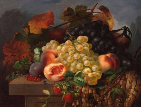 | Still Life Study of Grapes, Peaches and Strawberries on a Ledge | |