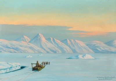 Scenery from Greenland with a dog sledge