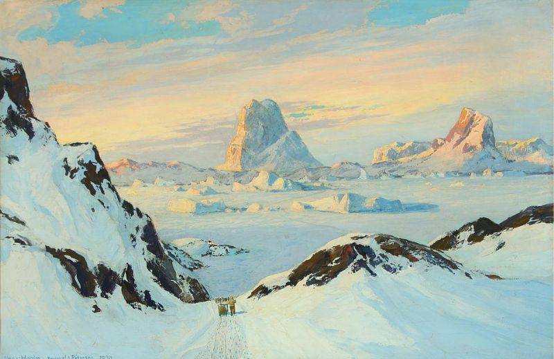 | Scenery from Umanak fiord in Greenland with a dogsledge | |