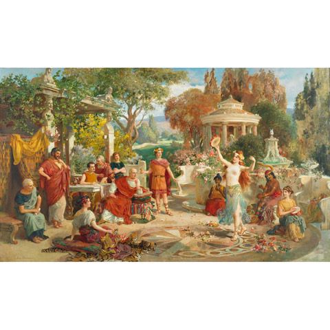 HAREM GIRLS PERFORMING IN A ROMAN GARDEN