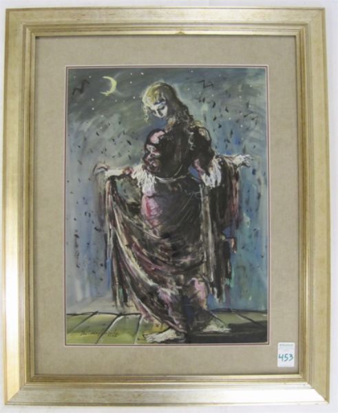 Study of a young barefoot woman, head turned in a moonlit evening.