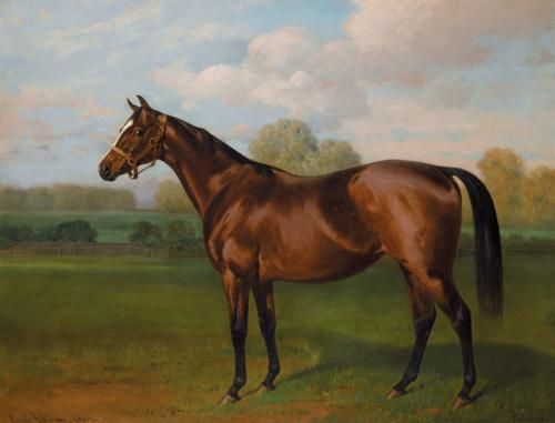 PRIESTESS, A BAY FILLY IN A LANDSCAPE