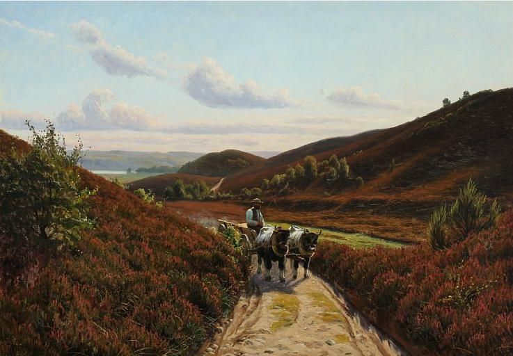 Heath landscape with an oxcart