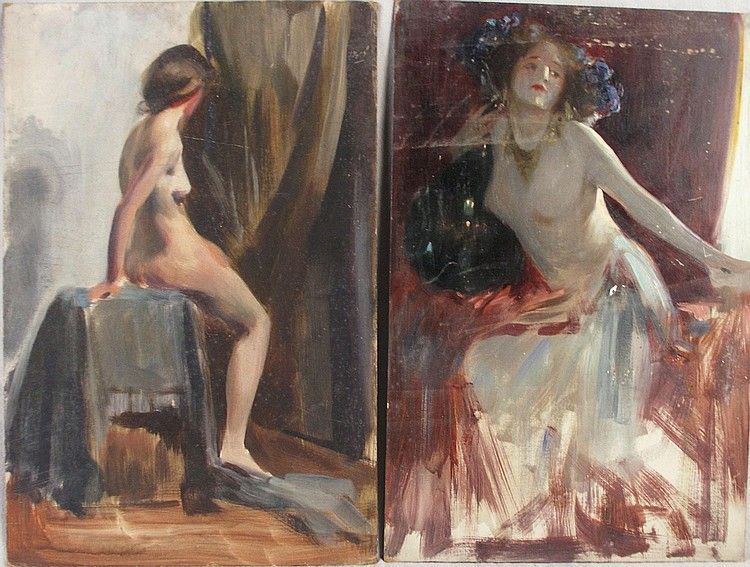 SEATED MODEL FROM BEHIND and STUDY OF FIGURE IN COSTUME