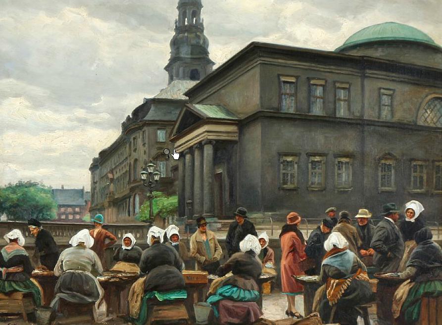 | Scene from the fish market at Gammel Strand in Copenhagen | |