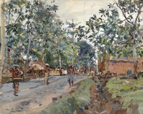 Figures on a street near a village, Bali