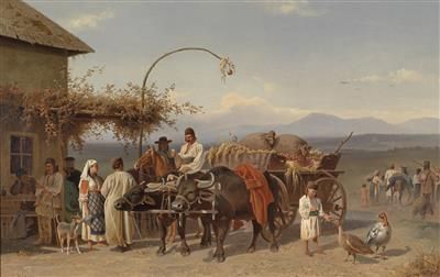 Rural Romanian Folk with Buffalo Waggon