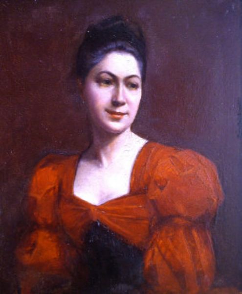 Portrait of a lady half-length in a red dress