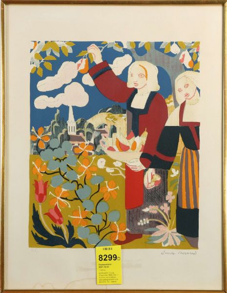 Kvinnor vid fruktträd, stämpelsignerad Emile Bernard