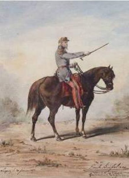 Porträt des Géneral de Laveaucoupet zu Pferd