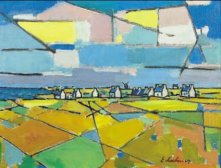 VILLAGE EN BORD DE MER AVEC MOULIN