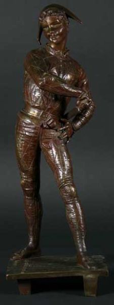 A Bronze Figure of a Harlequin, with reddish-brown patination