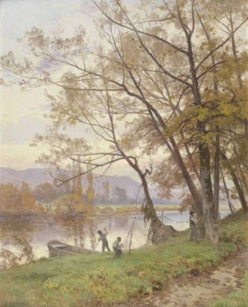 PECHEURS DANS UN PAYSAGE DU DOUBS