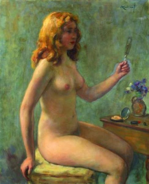 Jeune fille nue au miroir.