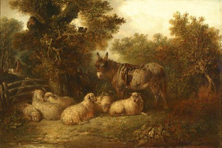 Wooded Landscape with a Donkey and Sheep