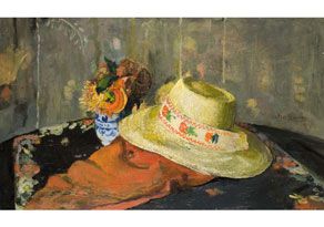 STILLEBEN MIT STROHHUT UND BLUMENVASE