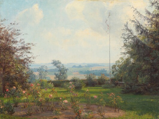 “Udsigt fra Frk. Foghs Have i Skjold”. Garden scenery