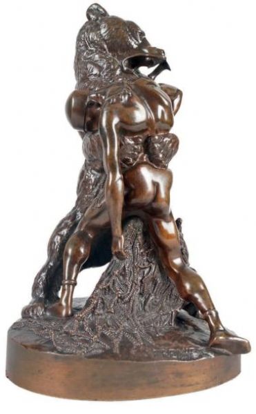 HOMME ATTAQUÉ PAR UN OURS Ancienne