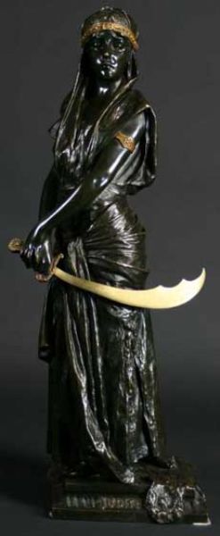 A Bronze Statuette of Judith, with a gilt head dress, arm band & sword