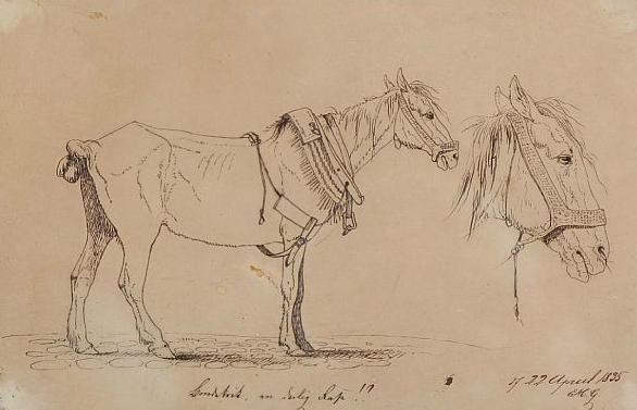 Two sketches of resp. cows and horses
