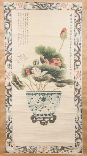 LOTUS-FILLED BLUE AND WHITE DRAGON PLANTER