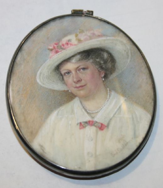 | Oval Miniature Head and Shoulders Portrait of Mrs Norton Matthews, wearing a White Hat with a Rose Band, White Chemise and Pearl | |