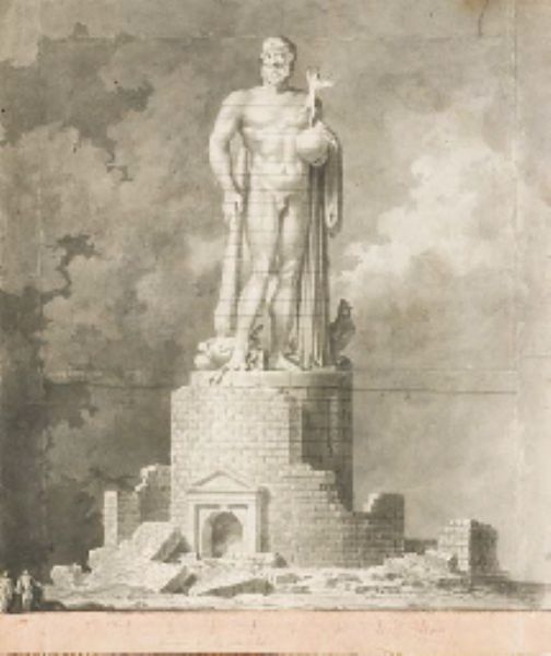 | Monument surmonté d'une statue d'Hercule portant un globe sur lequel se tient une allégorie de la Fortune | |