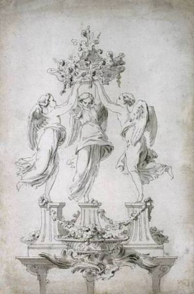 TROIS ANGES PORTANT UN PANIER FLEURI