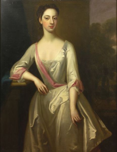 PORTRAIT OF A YOUNG LADY,THREE-QUARTER LENGTH, IN A WHITE DRESS