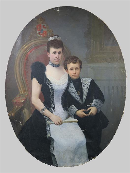 Königin Victoria Eugénie von Spanien mit Alfonso XIII. als Kind